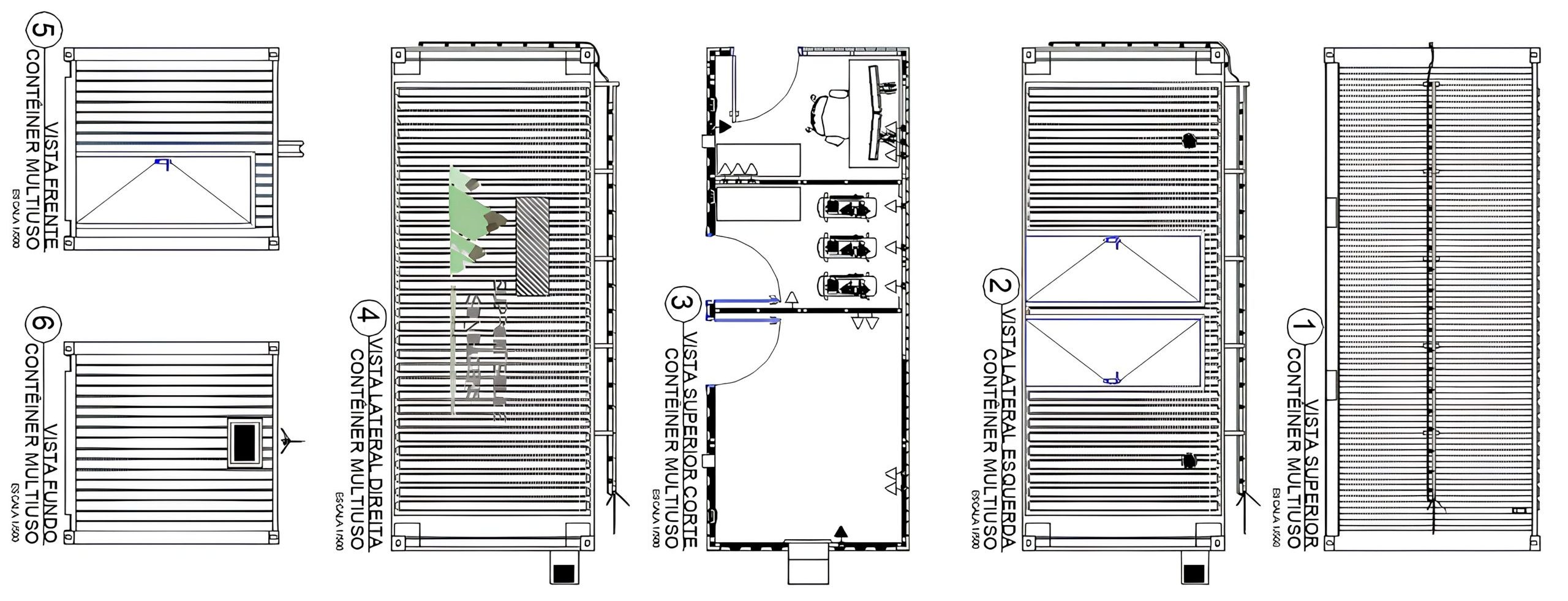 - Dentro do contêiner, são instalados todos os equipamentos necessários para a execução das sondagens, incluindo sondas, trados, equipamentos de perfuração e outros instrumentos geotécnicos.