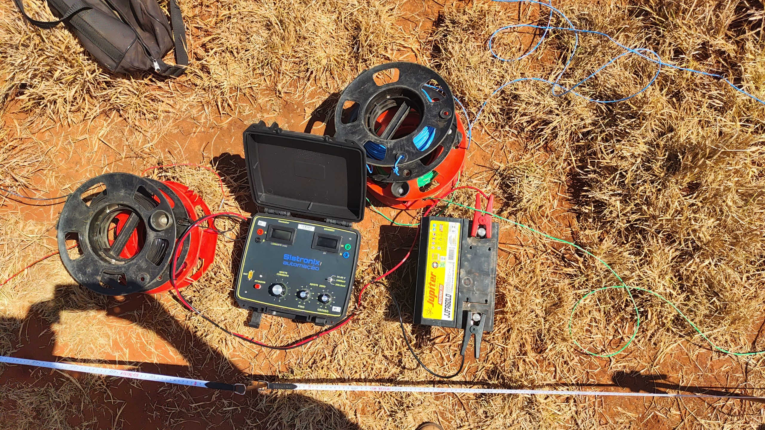 Descrição Técnica da Atividade: A sondagem elétrica – também chamada de Sondagem Elétrica Vertical (SEV) – consiste na aplicação de corrente elétrica no solo e medição do potencial resultante para calcular a resistividade aparente das camadas.